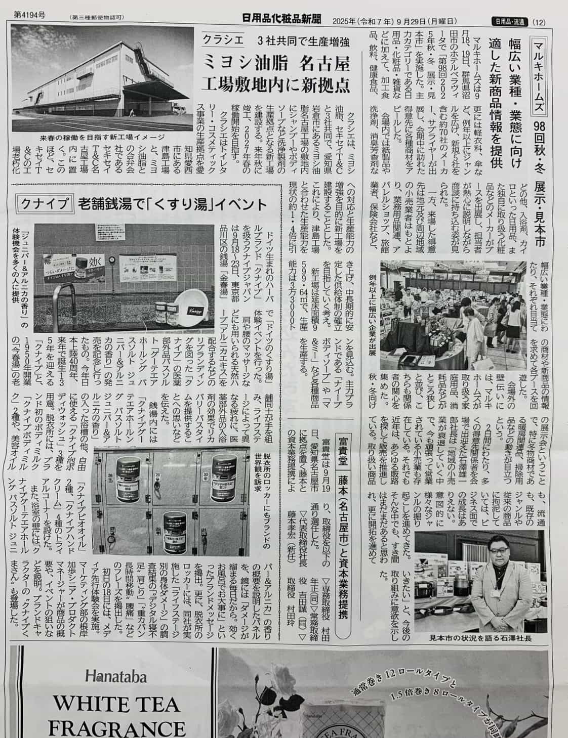 2025年9月29日付の日用品化粧品新聞にて、第98回秋・冬 展示・見本市の記事が掲載されました。